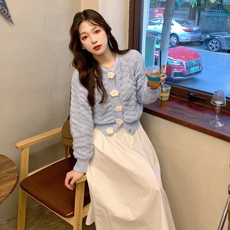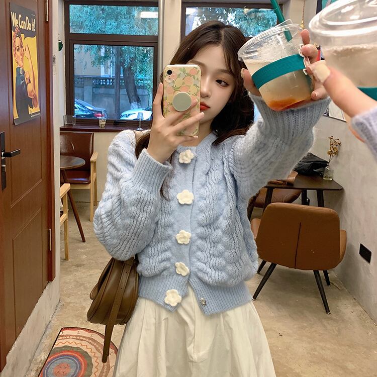 ブルーセーター ジャケット スプリングオータムカーディガンスタンダードトップス レトロ 春物 秋物 タオタオイ24504630377