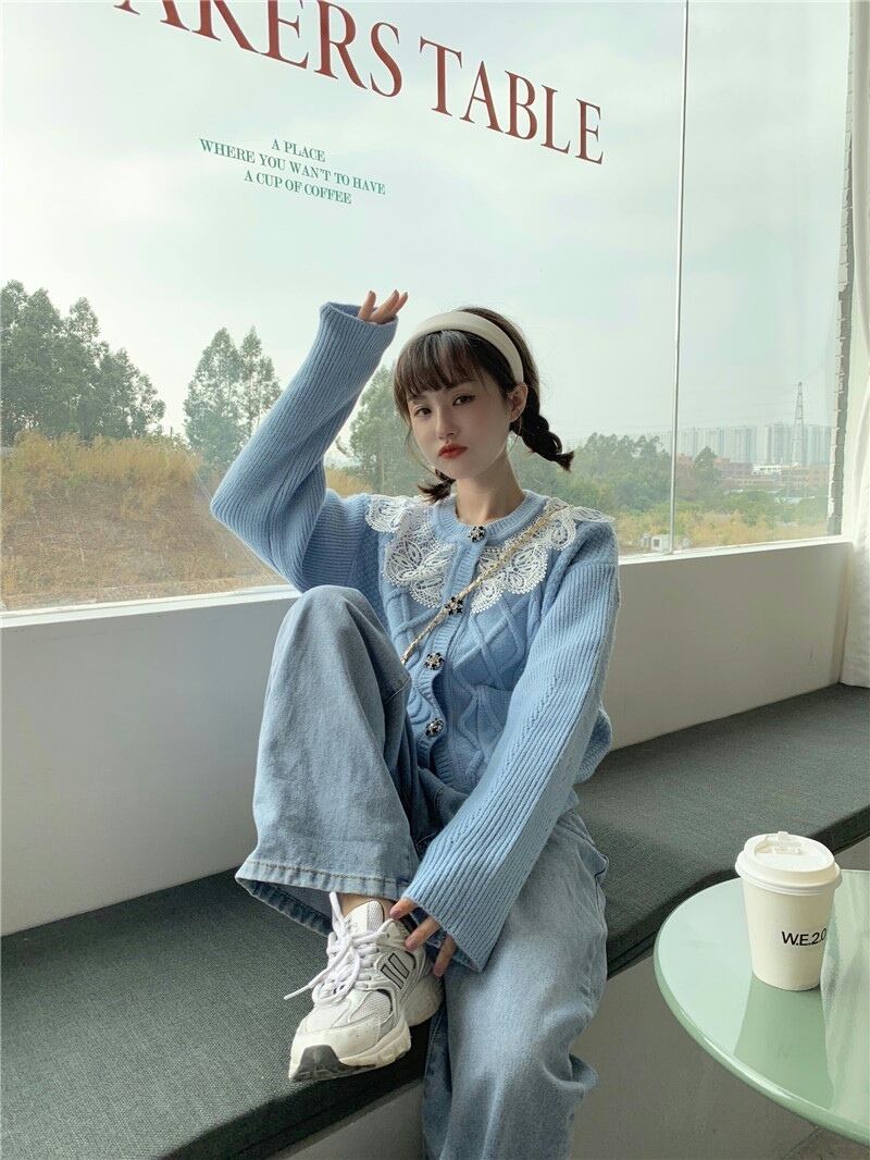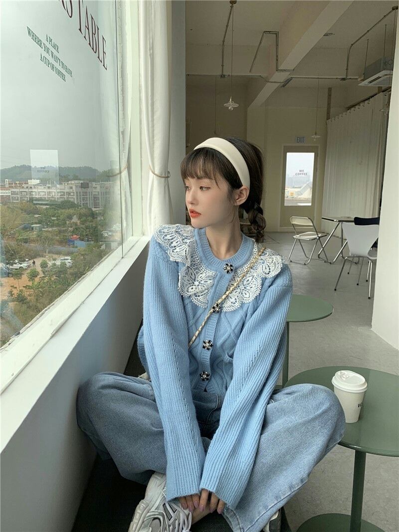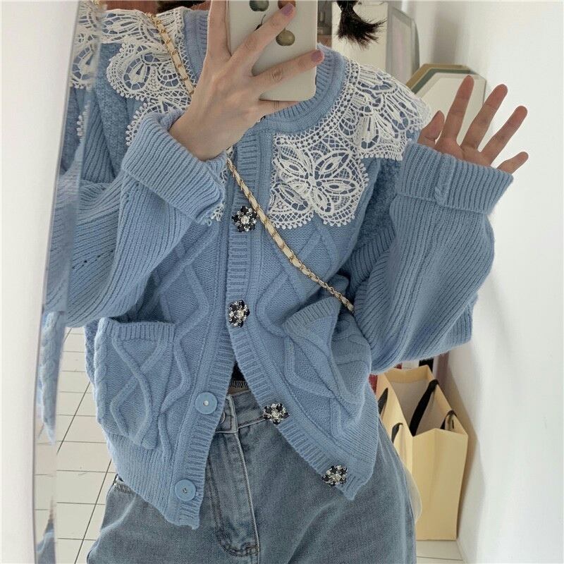 ブルーセーター コート スプリングオータムニットカーディガンクロップトップ トップス 春物 秋物 タオタオイ49305760868