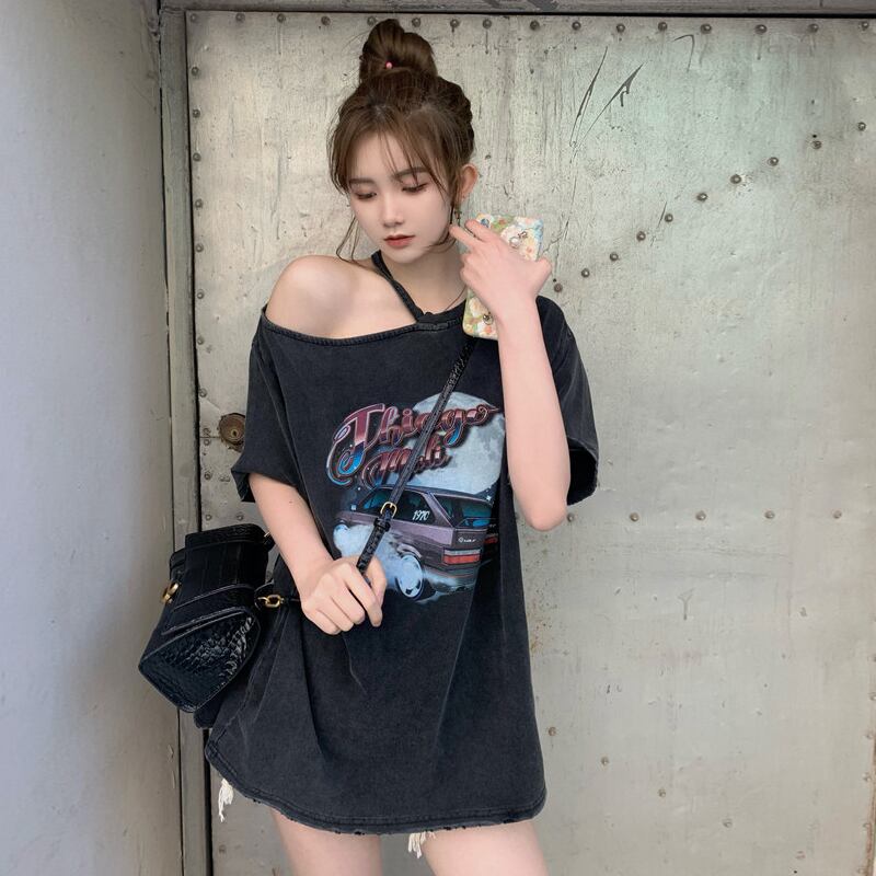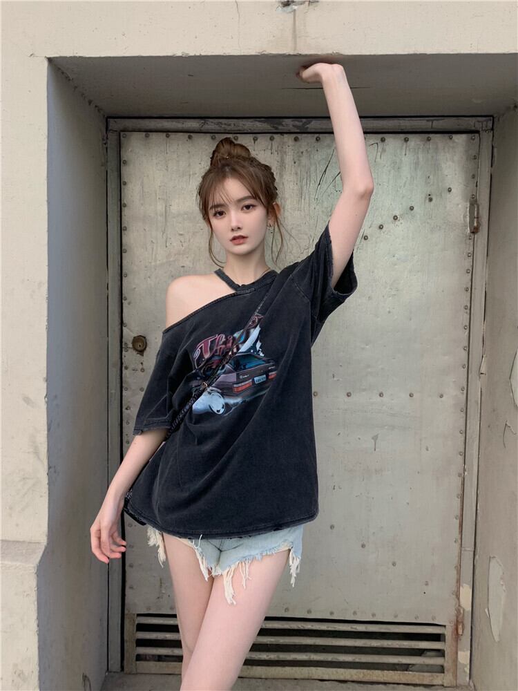 ストラップレスTシャツ サマースタンダードルーズ レトロ 夏物 タオタオイ89089909690
