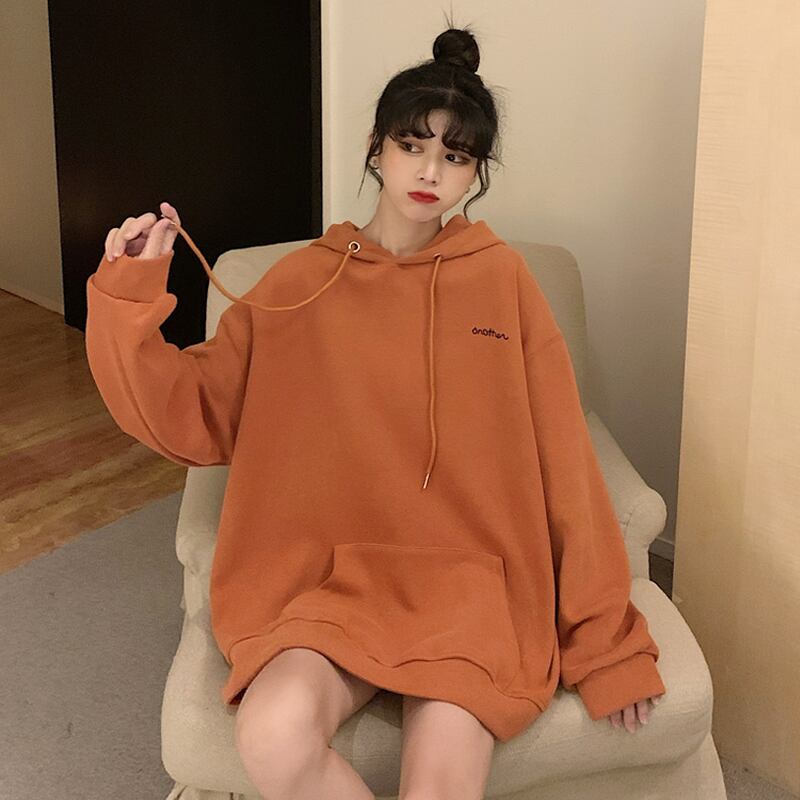 オレンジフードセーター ルーズスプリングオータムトップス ロング 春物 秋物 タオタオイ79223239596