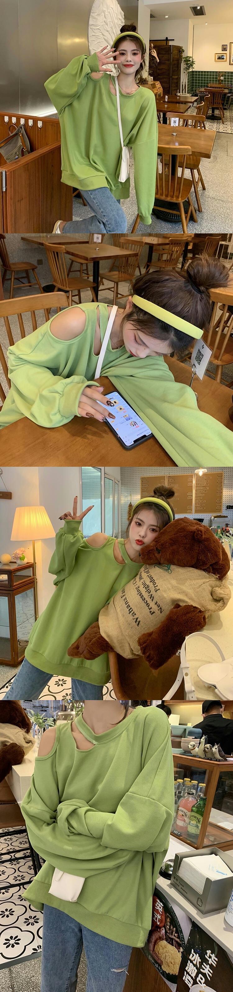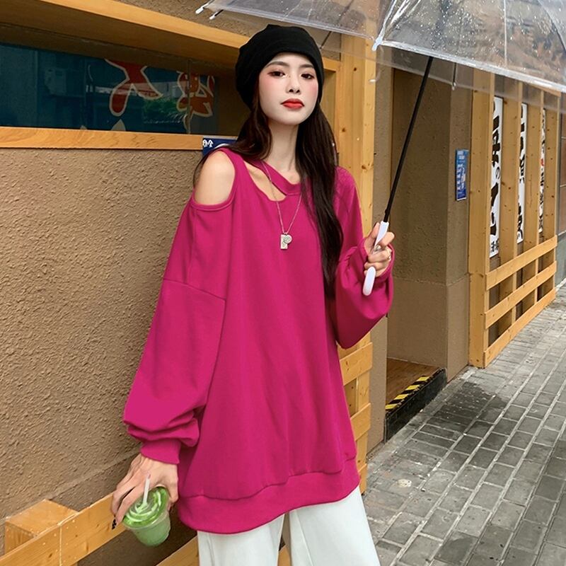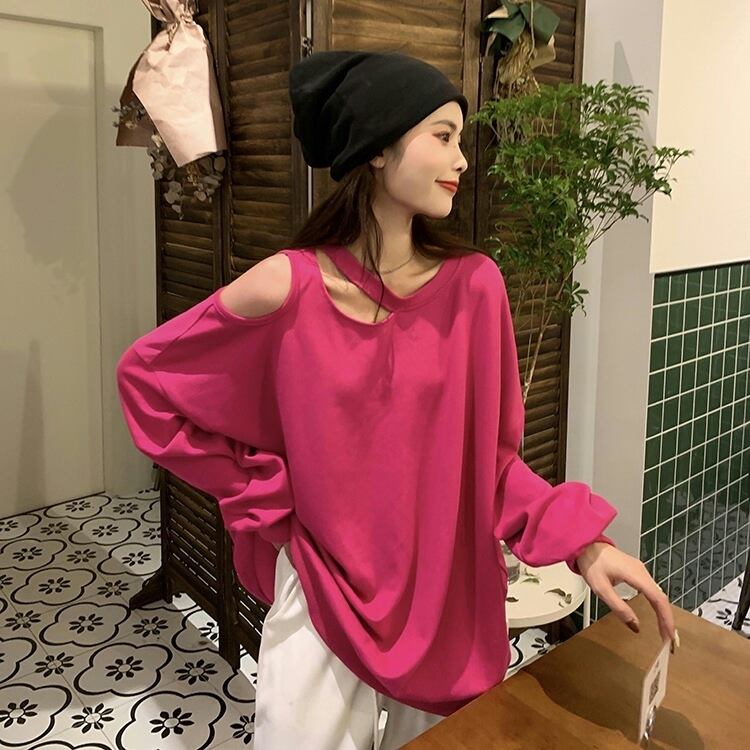 セーター ルーズスタイルスプリングオータムプルオーバー トップス 春物 秋物 オフショルダー タオタオイ80262924823