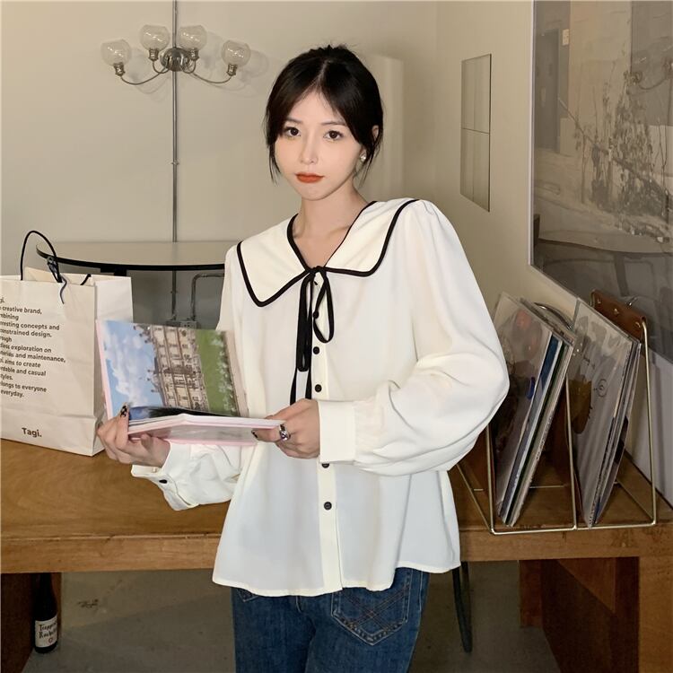 カラー長袖スリーブシャツ スプリングオータムトップス ロング 春物 秋物 タオタオイ95955991546