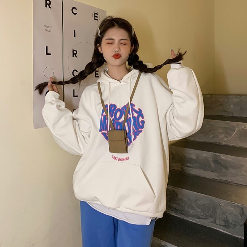 ホワイトフードセーター スプリングオータムルーズブラウス 大人ガーリー スウィート キュート カジュアル 春物 秋物 タオタオイ58647368753