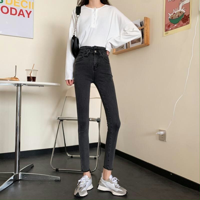 スプリングオータムスキニージーンズ ハイウェストパンツ 春物 秋物 タオタオイ39684674172
