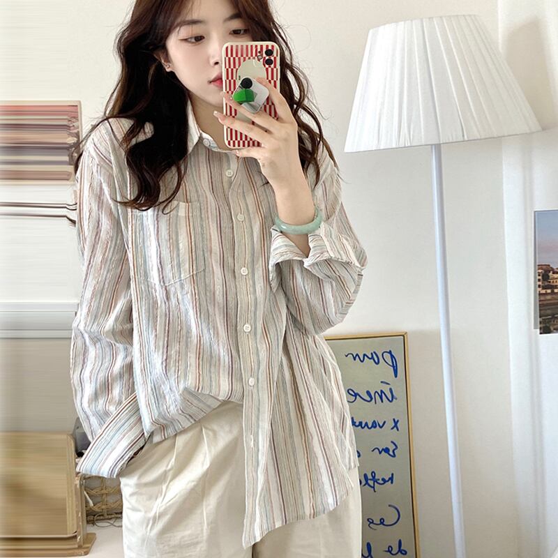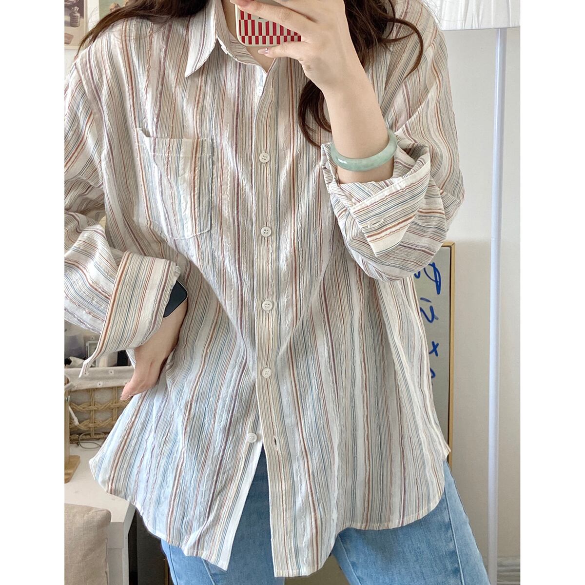 ストライプシャツ スプリングオータムスタイルルーズトップス ロング 春物 秋物 タオタオイ60487686756