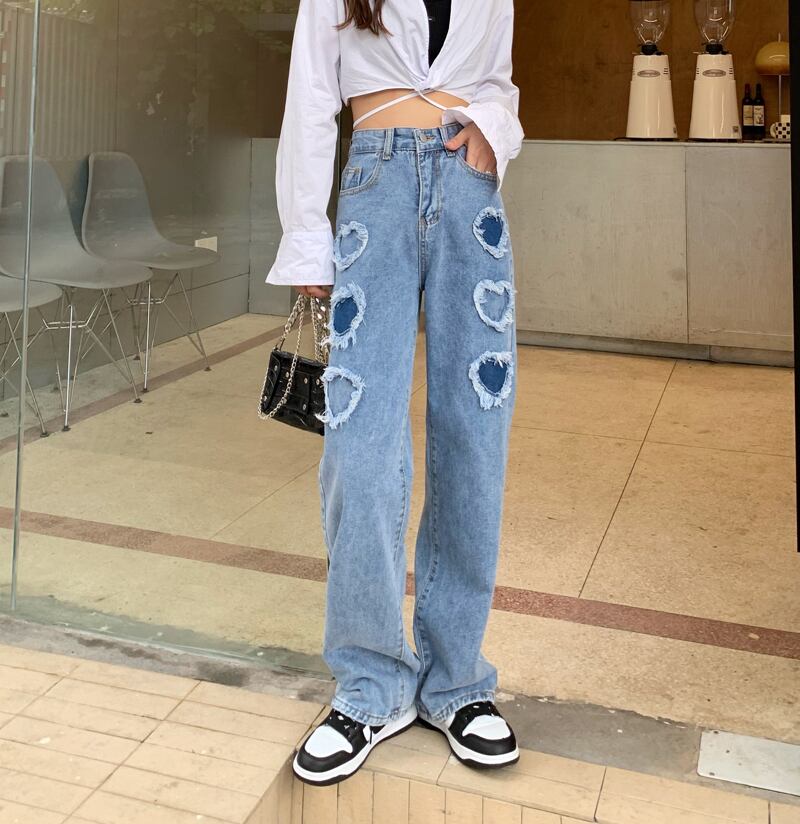 ジーンズ ルーズスプリングオータムハイウェストウェストワイドレッグパンツ 春物 秋物 ワイドパンツ タオタオイ31595351629