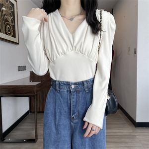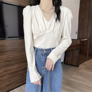 VネックTシャツ スプリングオータムレッドスリーブトップス ロング 春物 秋物 ピュア タオタオイ65567930708
