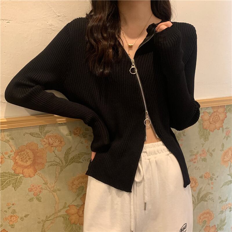 ブラックニットカーディガンスプリングオータム薄手スタイルセーター ジャケット ロング 春物 秋物 タオタオイ61259286849