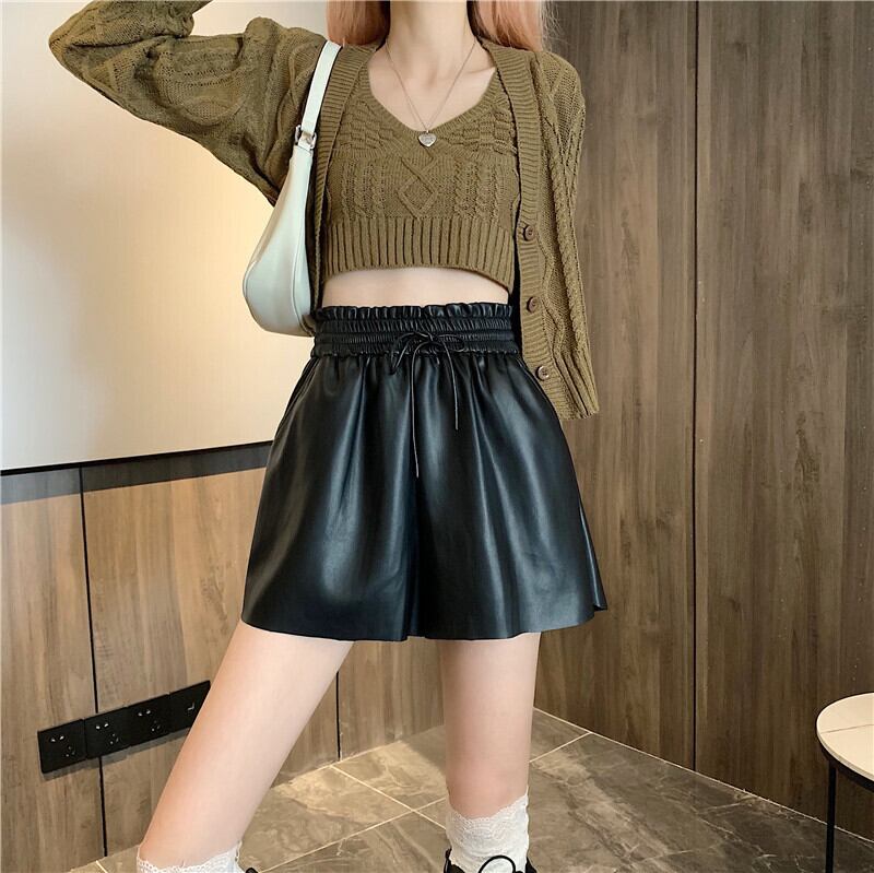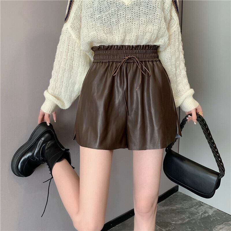 ウェストカジュアルパンツ ショーツ スプリングオータムルーズレザー 春物 秋物 ブルマー タオタオイ88057544472