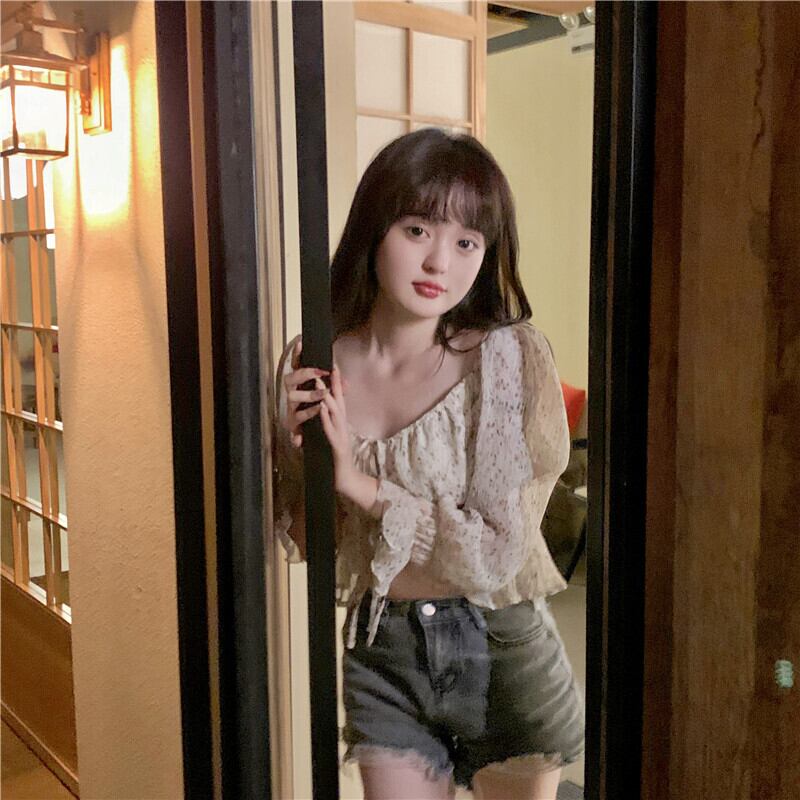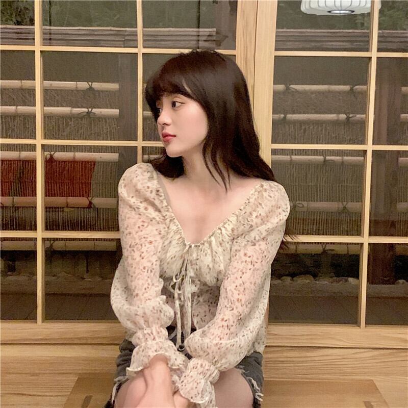フローラルショートブラウス スプリングオータムVネックシャツ 大人ガーリー スウィート キュート カジュアル 春物 秋物 花柄 タオタオイ92094634008