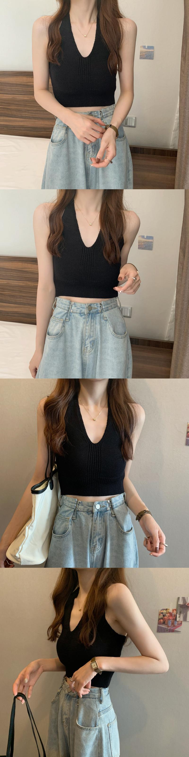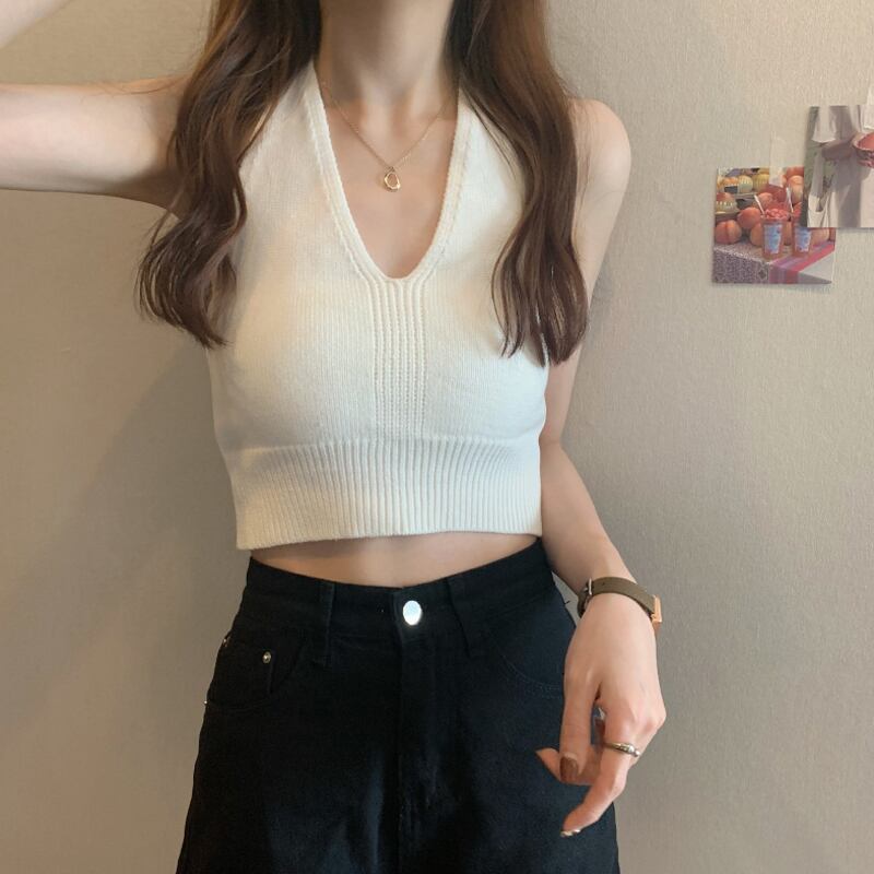 ホルターニットレディースサマーバックトップス Vネック 夏物 タオタオイ65114208024