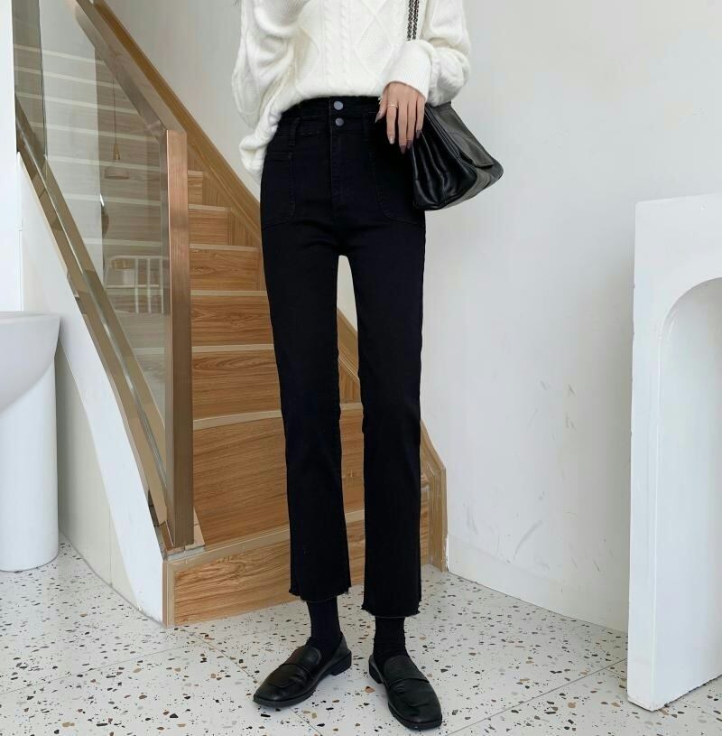 ブラックジーンズ スプリングオータムハイウェストウェストスリムパンツ 春物 秋物 タオタオイ62985451149