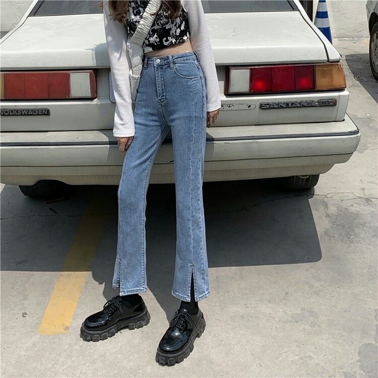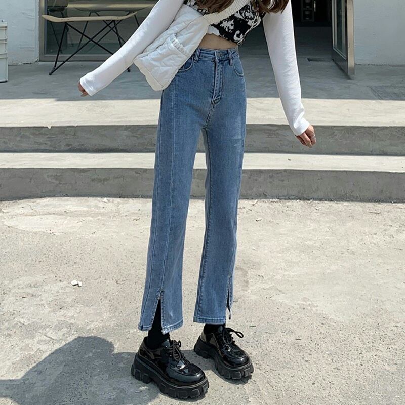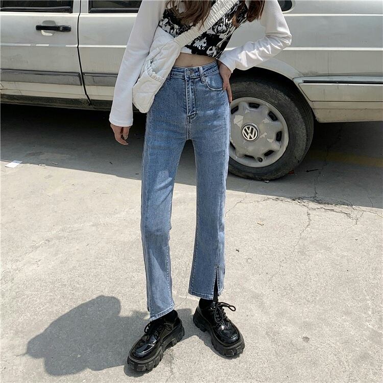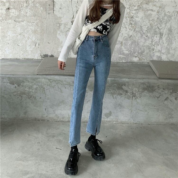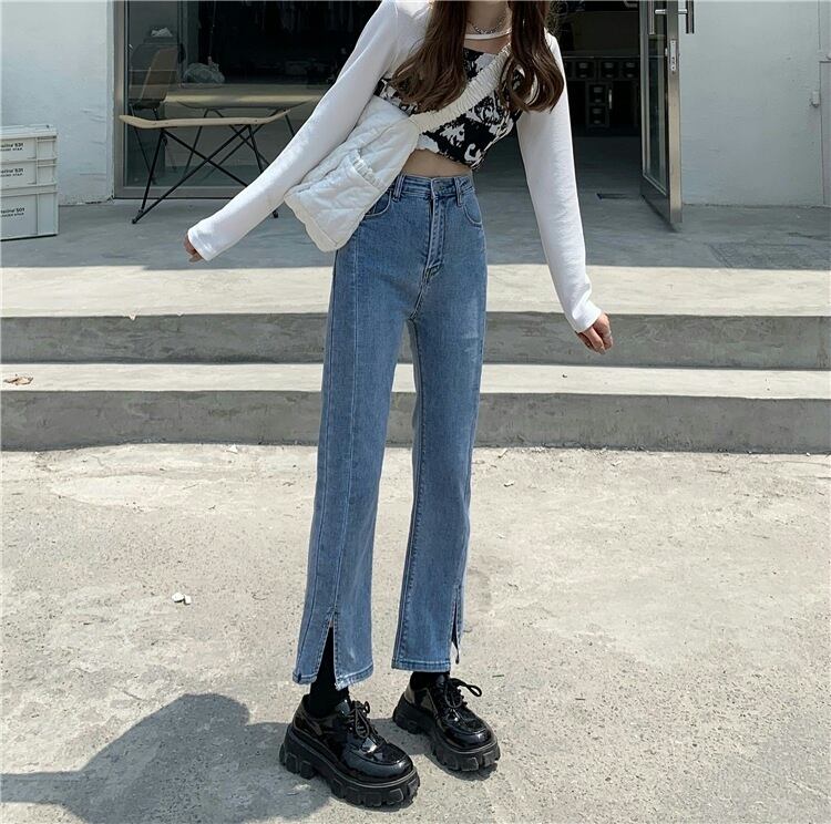 ウェストスリットクロップドジーンズ ルーズスリムパンツ タオタオイ2517446551