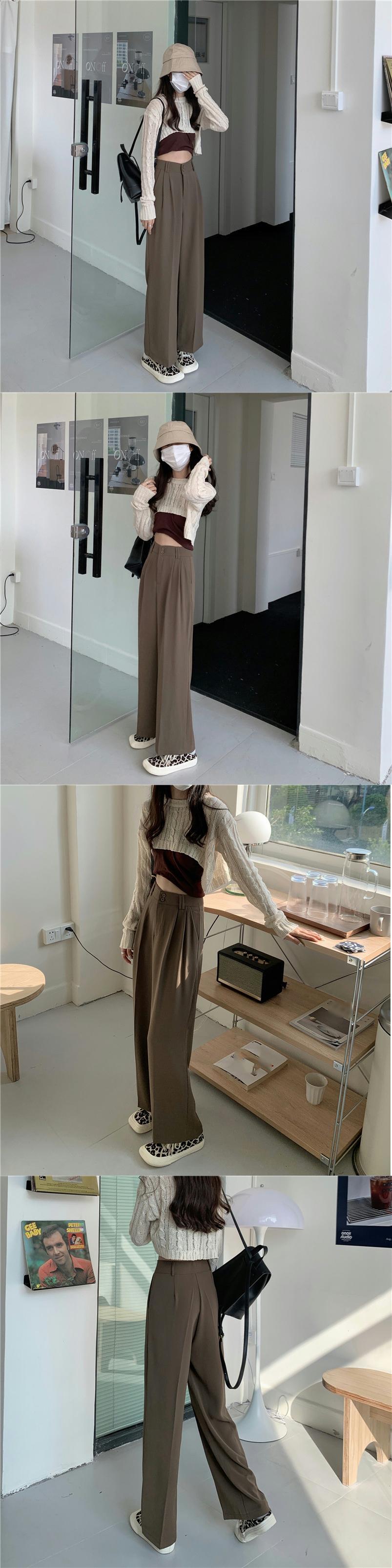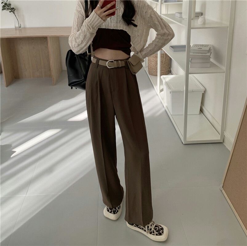 スプリングオータムパンツ レディースルーズワイドレッグハイウェストウェストスリムカジュアル 春物 秋物 ワイドパンツ タオタオイ24254535101