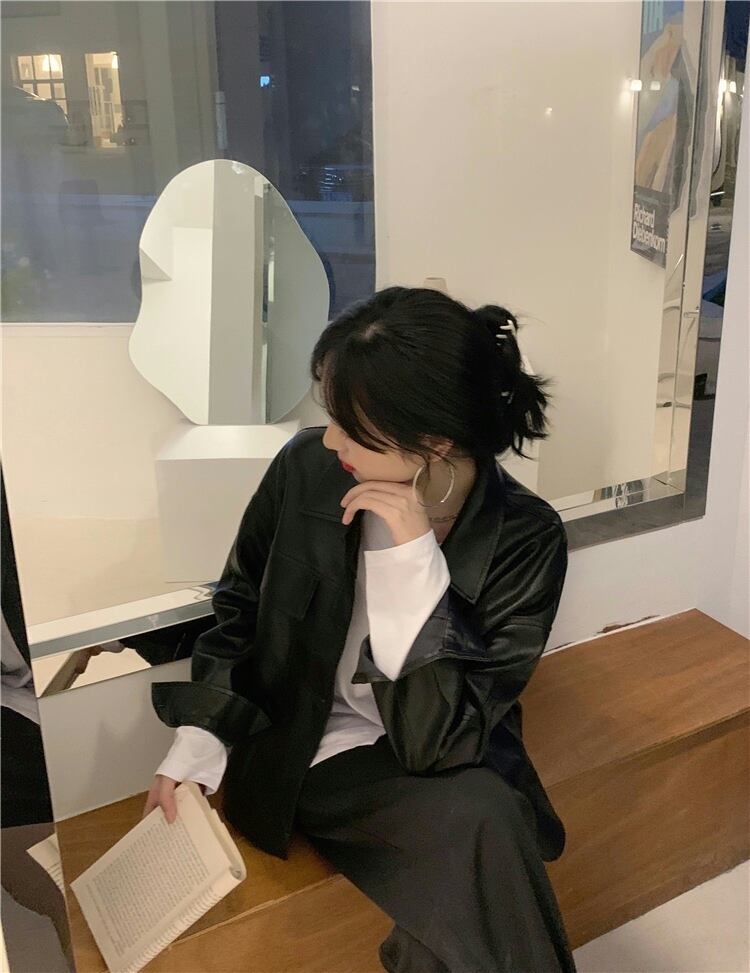 ショートレザージャケット スプリングオータムブラック 春物 秋物 タオタオイ46483304966