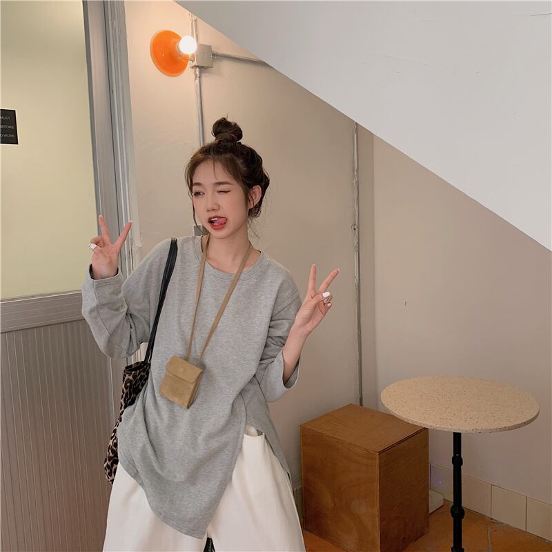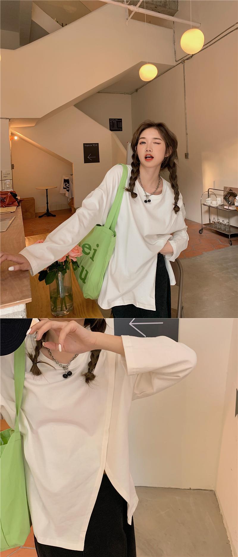 ホワイトスリットTシャツ スプリングオータムルーズスタイルトップス ロング 春物 秋物 タオタオイ74679922977