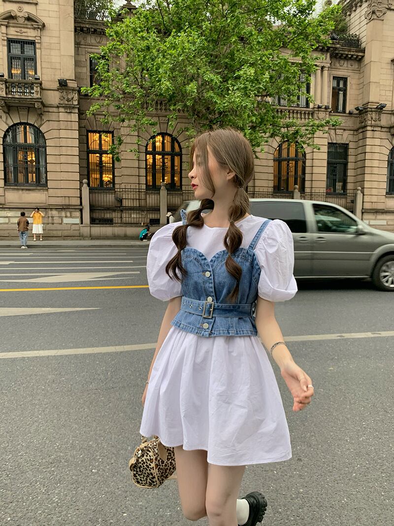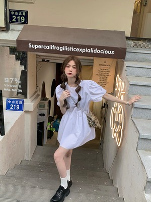 ホワイトスリーブドレス サマーショートスカート 夏物 タオタオイ39980675232