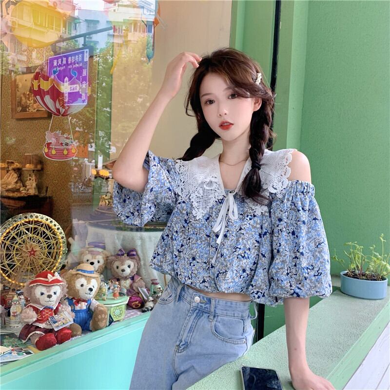 スタイルショートトップス サマーフローラルシャツ 夏物 花柄 タオタオイ87824441354