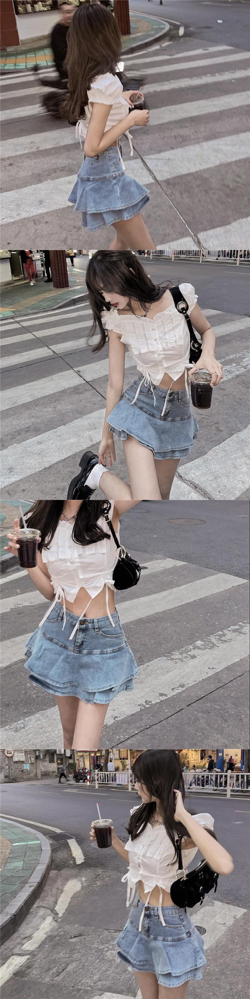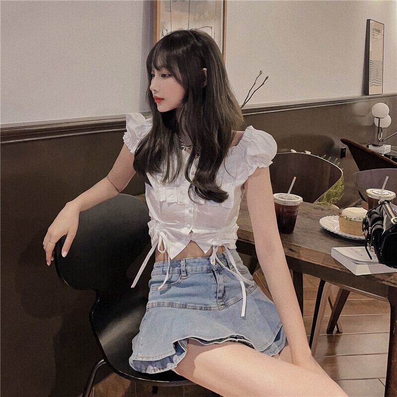 スカート ハイウェストウェスト薄手Aラインショートサマー 夏物 タオタオイ77121606824