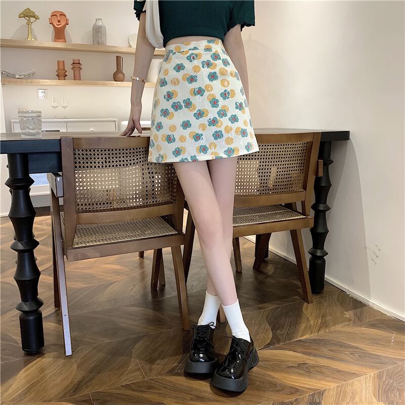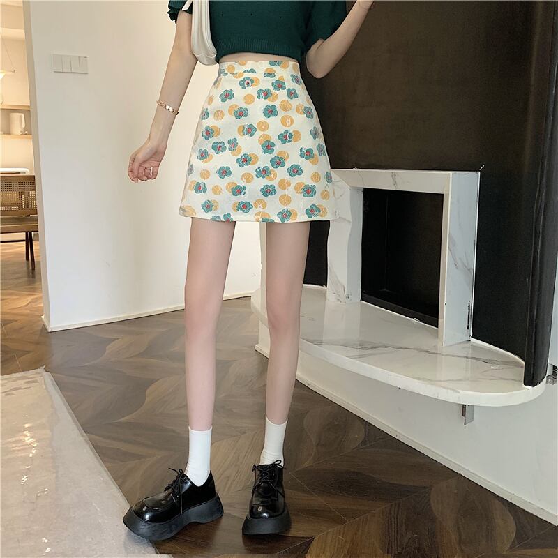 フローラルスカート サマーハイウェスト薄手Aラインショート 夏物 花柄 タオタオイ55189794268