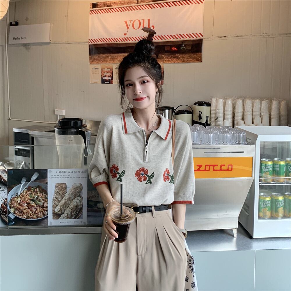 カラーニットTシャツ サマースタイルルーズ 夏物 タオタオイ46685778511