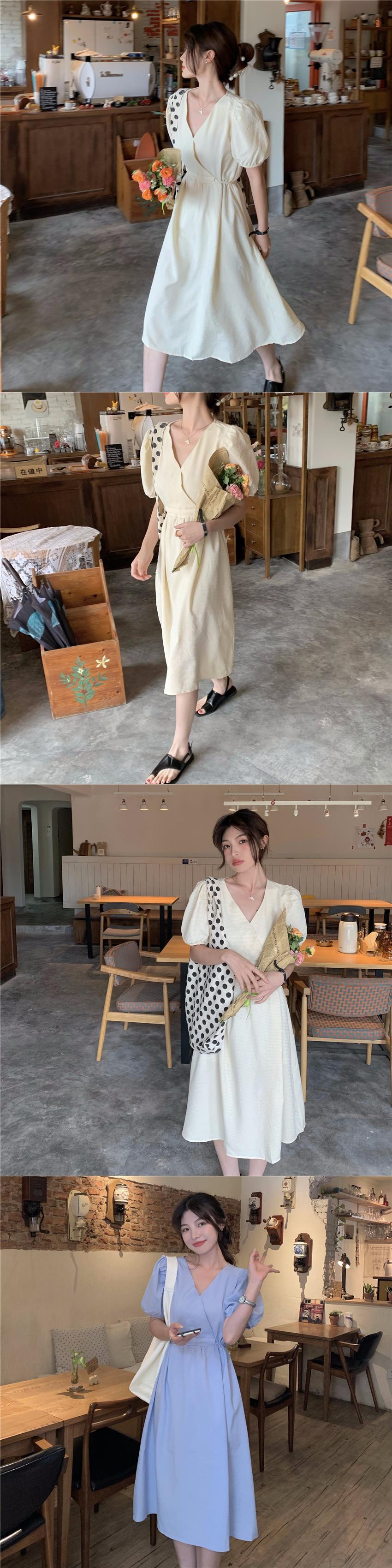 Vネックスリーブドレス サマーウェストロングスカート 夏物 タオタオイ34133760669