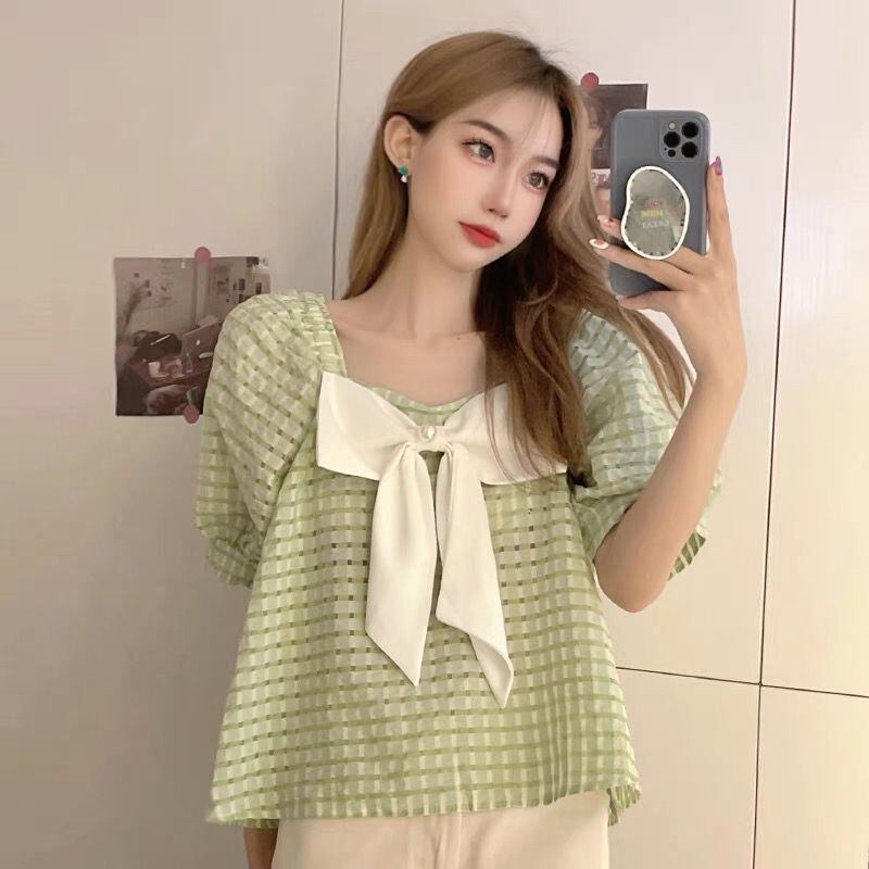 スリーブトップス ドレス サマーグリーンシャツ 大人ガーリー スウィート キュート カジュアル 夏物 タオタオイ26234383735