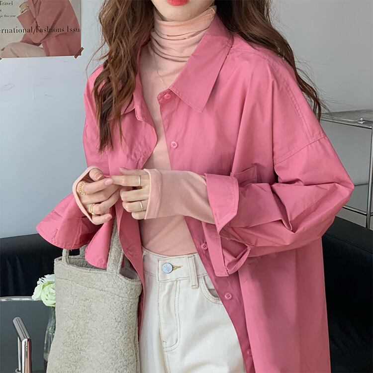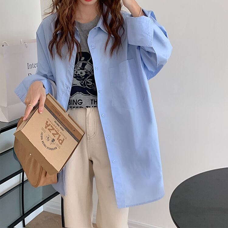 ブルーシャツ スプリングオータム薄手ルーズトップス ロング 春物 秋物 タオタオイ24060856715