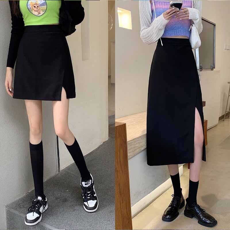 ブラックハイウェストスカート スプリングオータムAライン薄手 春物 秋物 タオタオイ22347093327