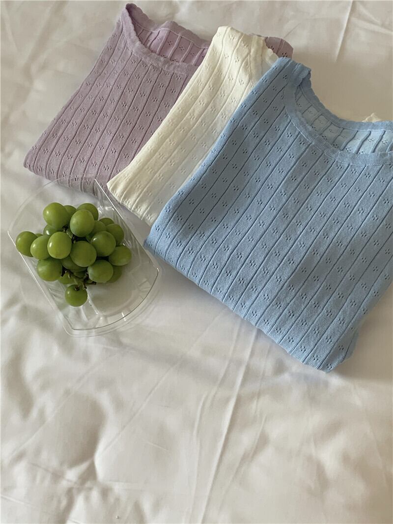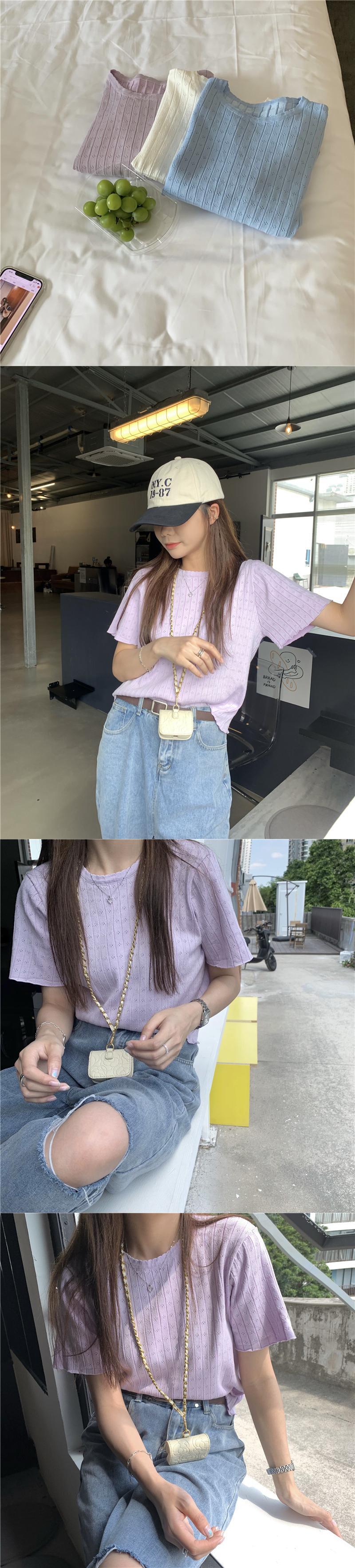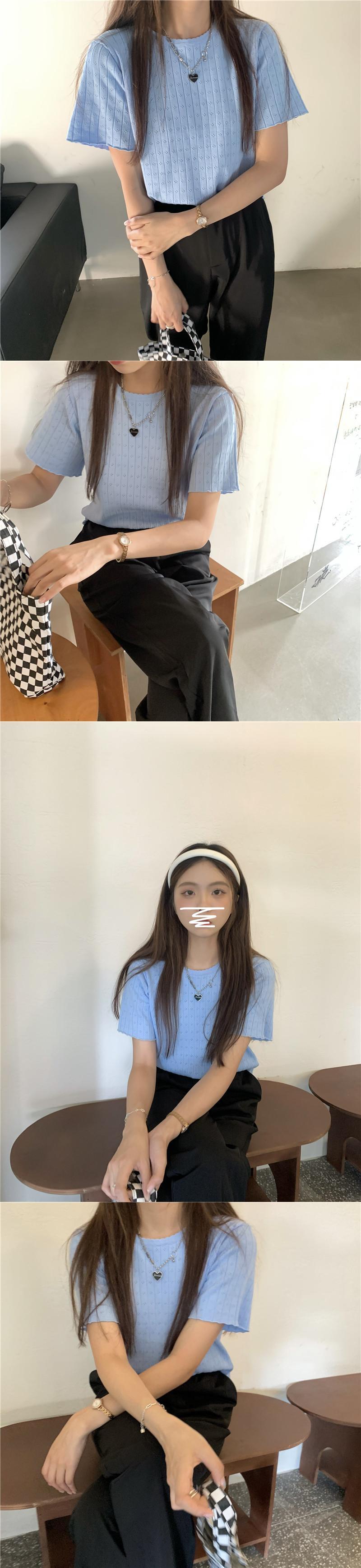 ブルーニットショートTシャツ サマースタイルトップス 夏物 タオタオイ45448182007