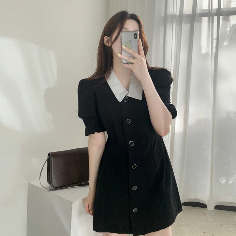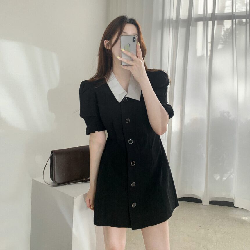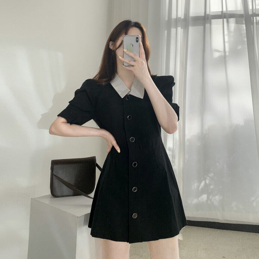ブラックスリーブドレス サマースタンダードショートスカート レトロ 夏物 タオタオイ68462245568