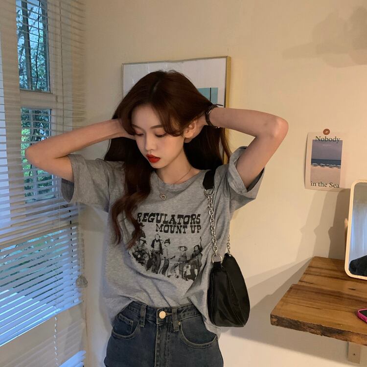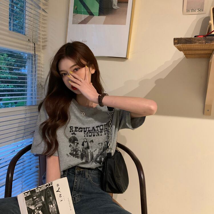 スタンダードTシャツ サマーレッドルーズスタイル レトロ 夏物 タオタオイ16110911179