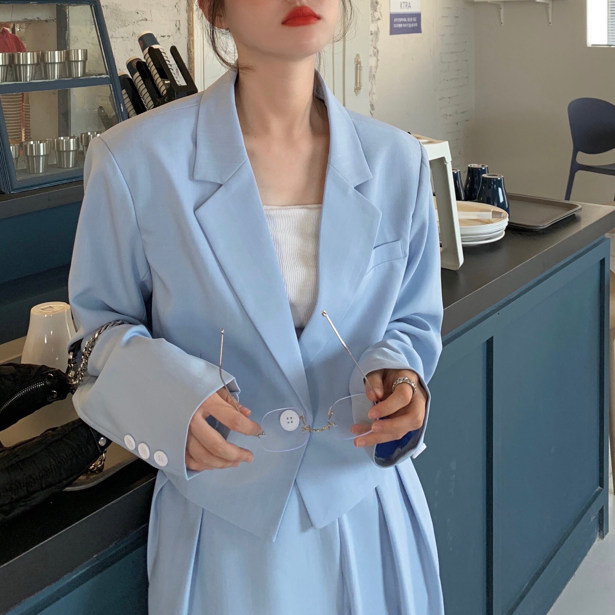 ブルージャケット スプリングオータムルーズトップス ストリート 春物 秋物 タオタオイ2449856317
