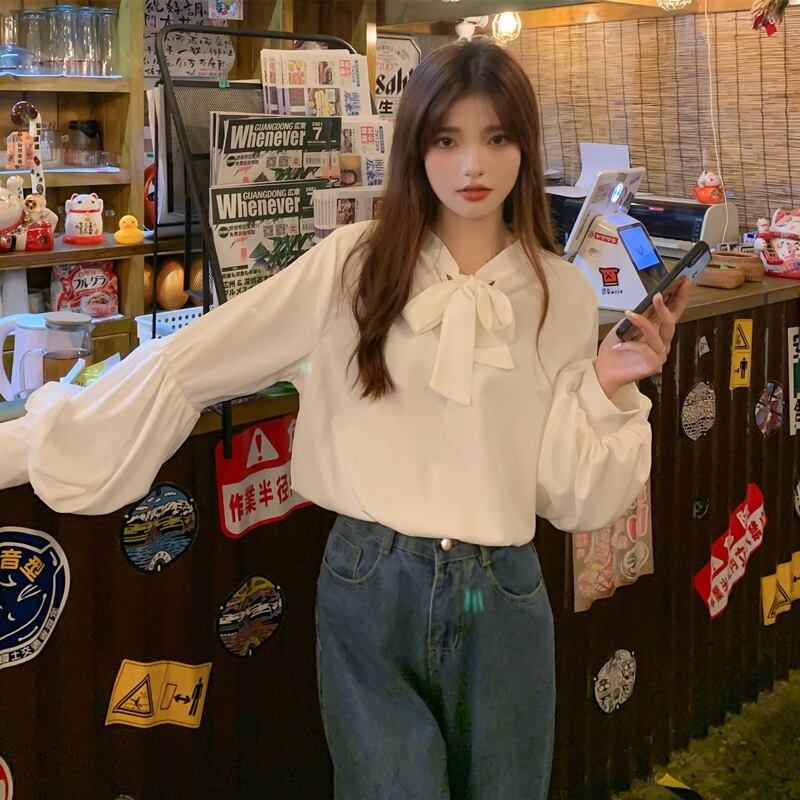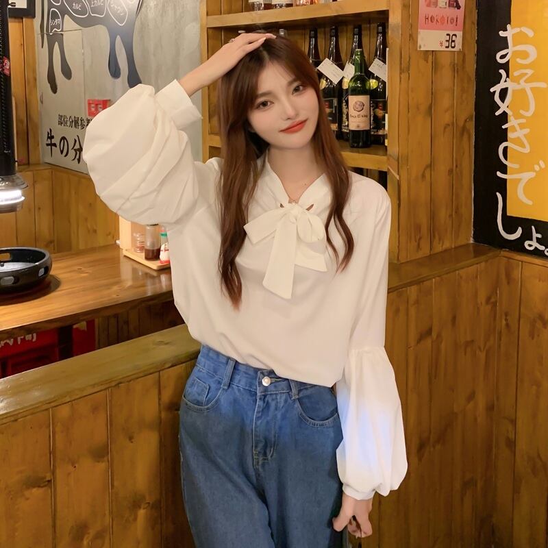 ホワイトシャツ スプリングオータムスリーブトップス リボン 春物 秋物 タオタオイ29627423110