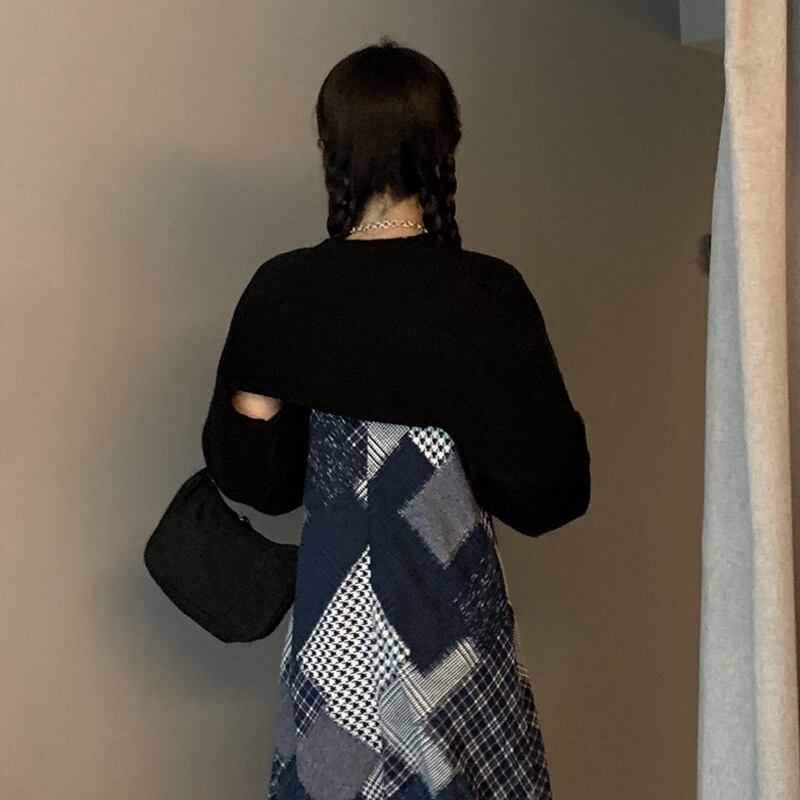 色:黒チョッキシングル,青いサスペンダードレスワンピース