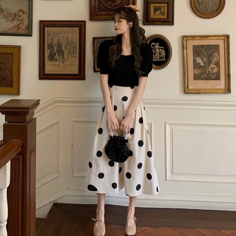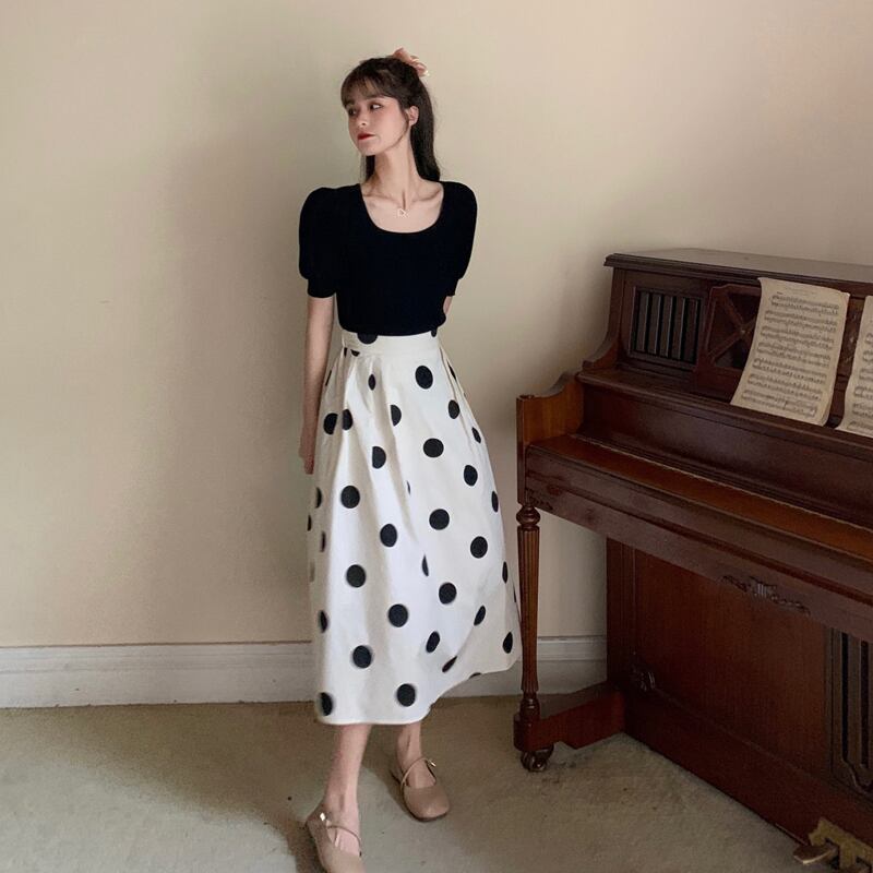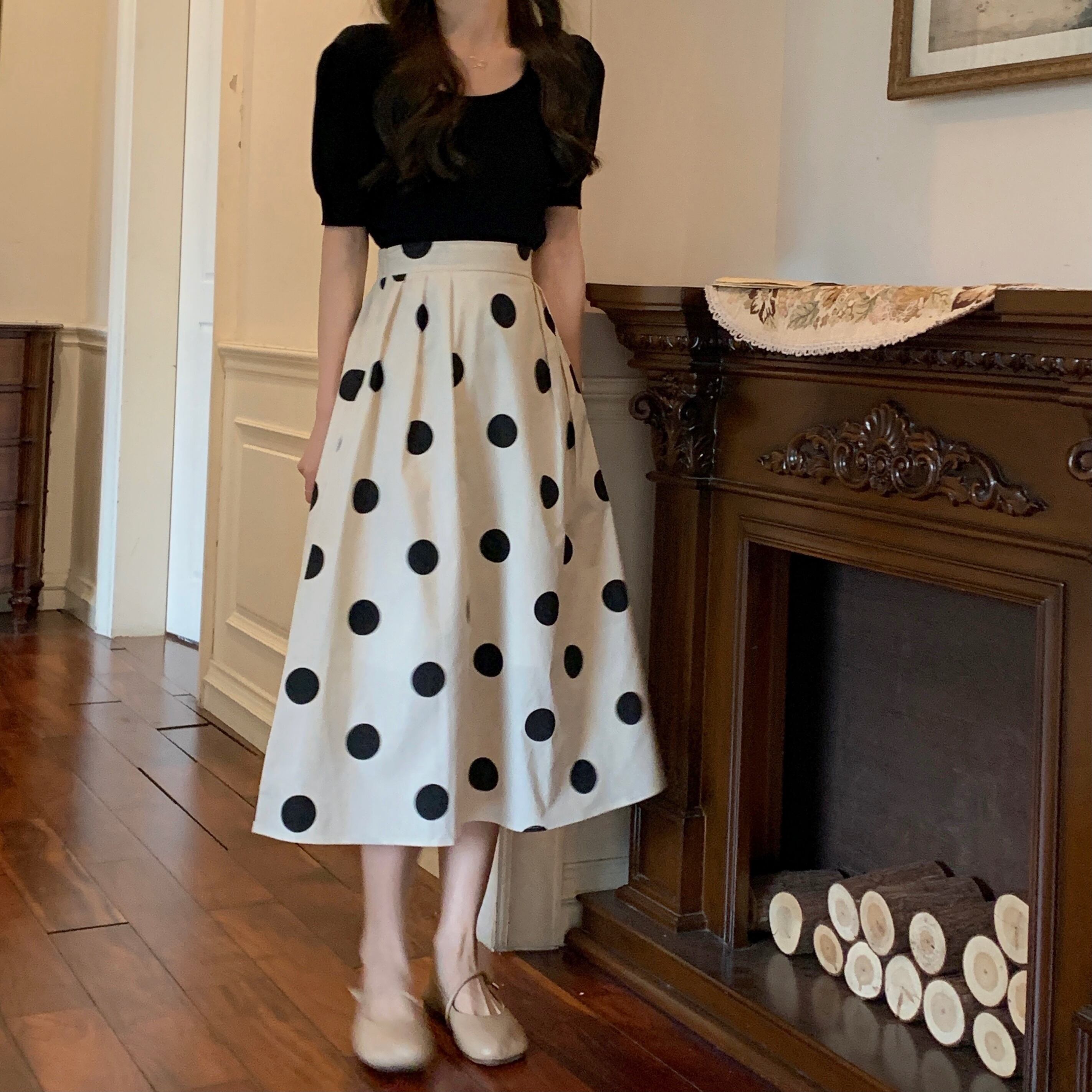 水玉スカート スプリングオータムハイウェストウェスト薄手Aライン 春物 秋物 タオタオイ34073037643