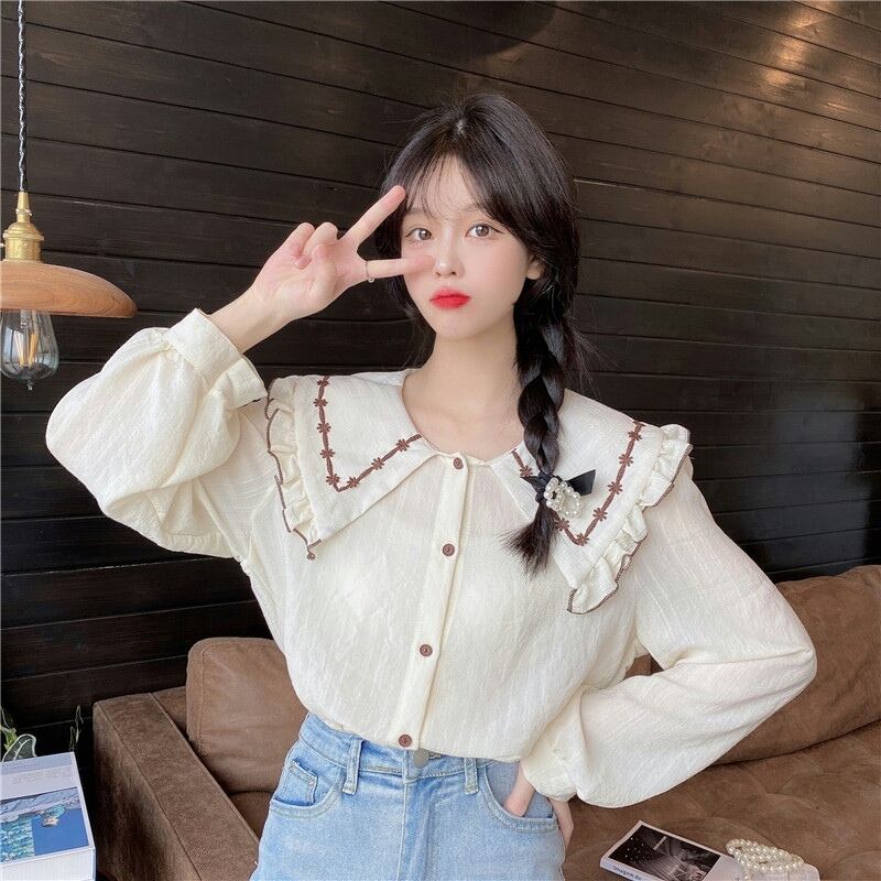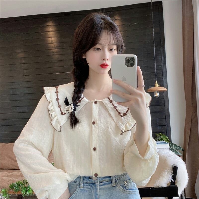 スプリングオータムカラーシャツ トップス ロング 大人ガーリー スウィート キュート カジュアル 春物 秋物 タオタオイ90728091765