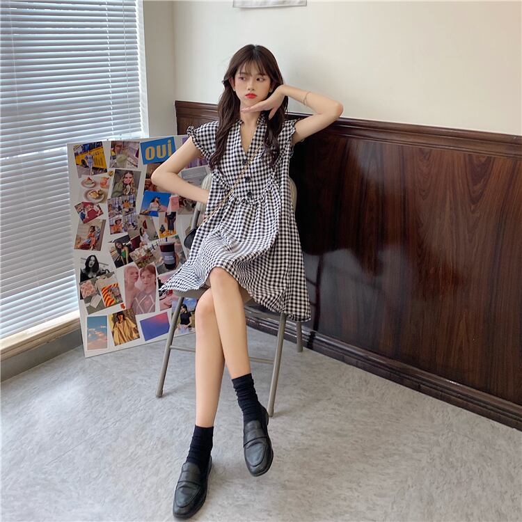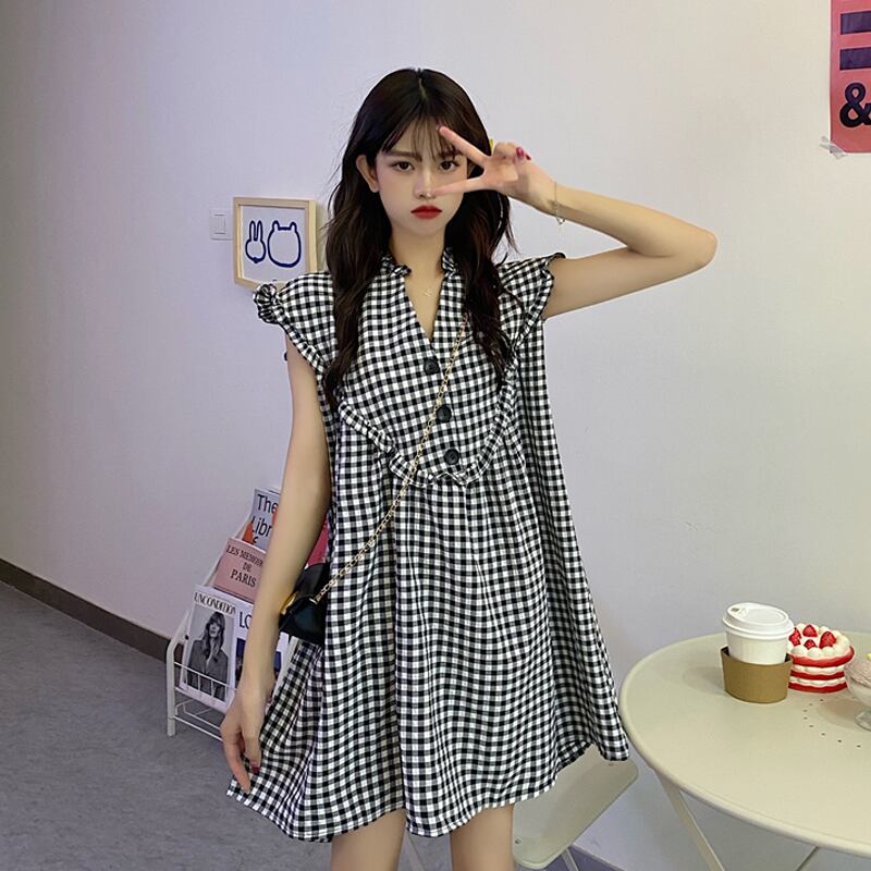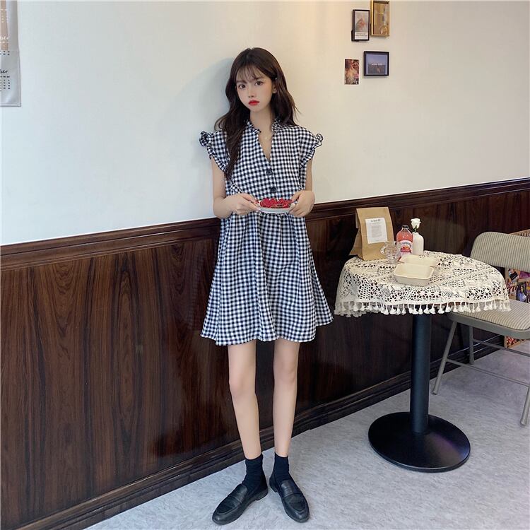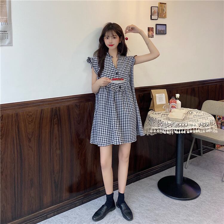 ブラックVネックノースリーブドレス サマースカート 夏物 タオタオイ50894176847