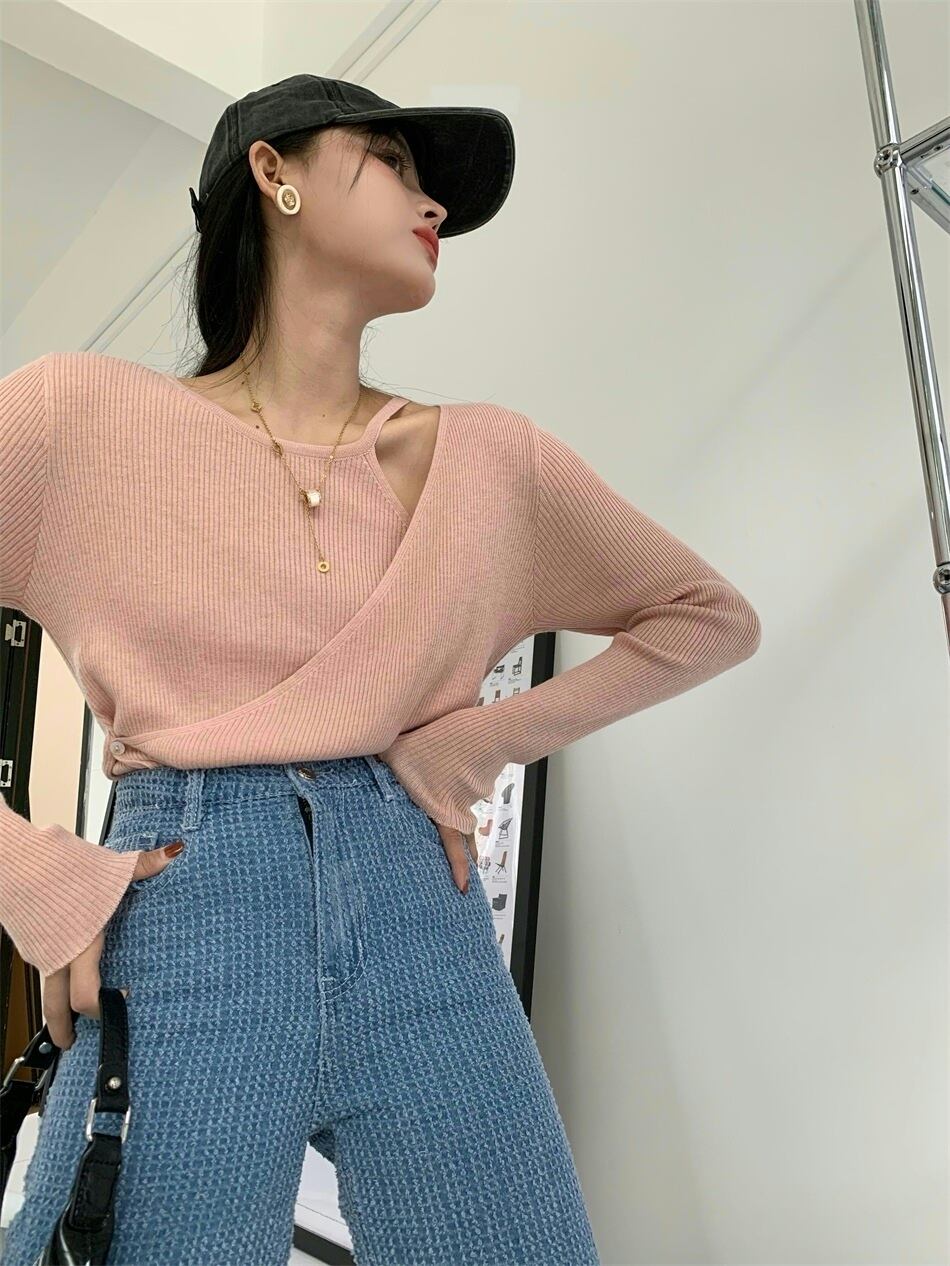 ニットTシャツ スプリングオータム ロング ピンク 春物 秋物 タオタオイ38285810934