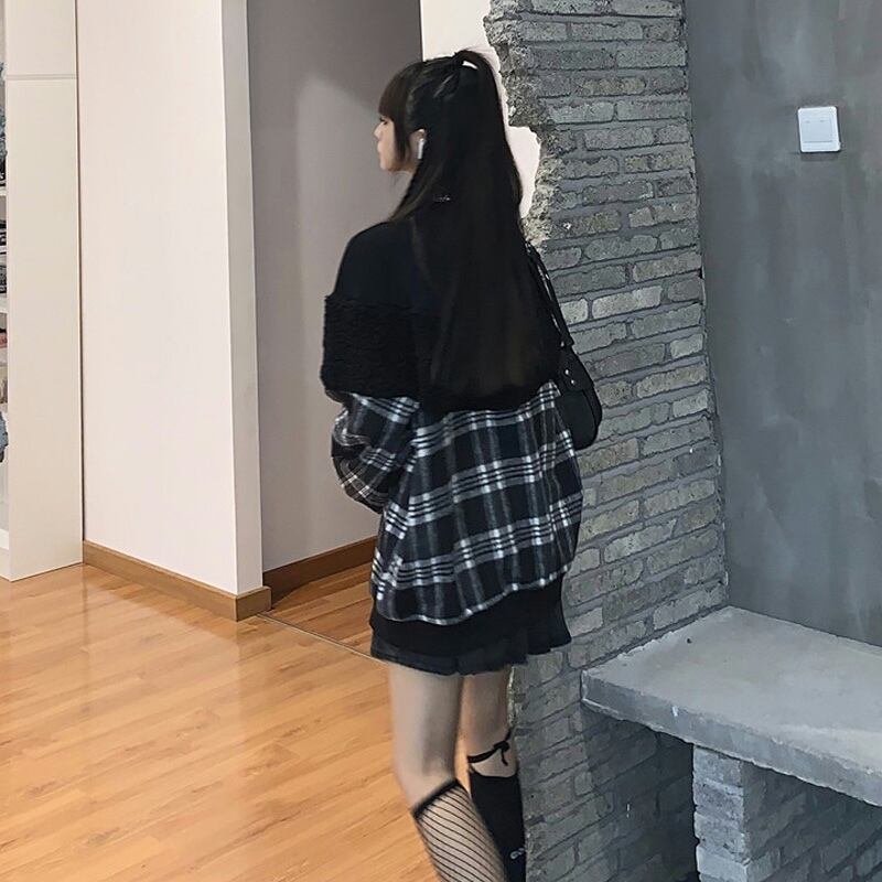 格子柄ウールセーター ルーズスプリングオータムスタンダードトップス ロング レトロ 春物 秋物 タオタオイ50896779433