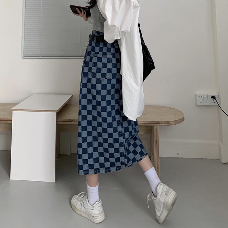 格子柄スカート スプリングオータムAラインハイウェストウェストロング 春物 秋物 タオタオイ9129226131